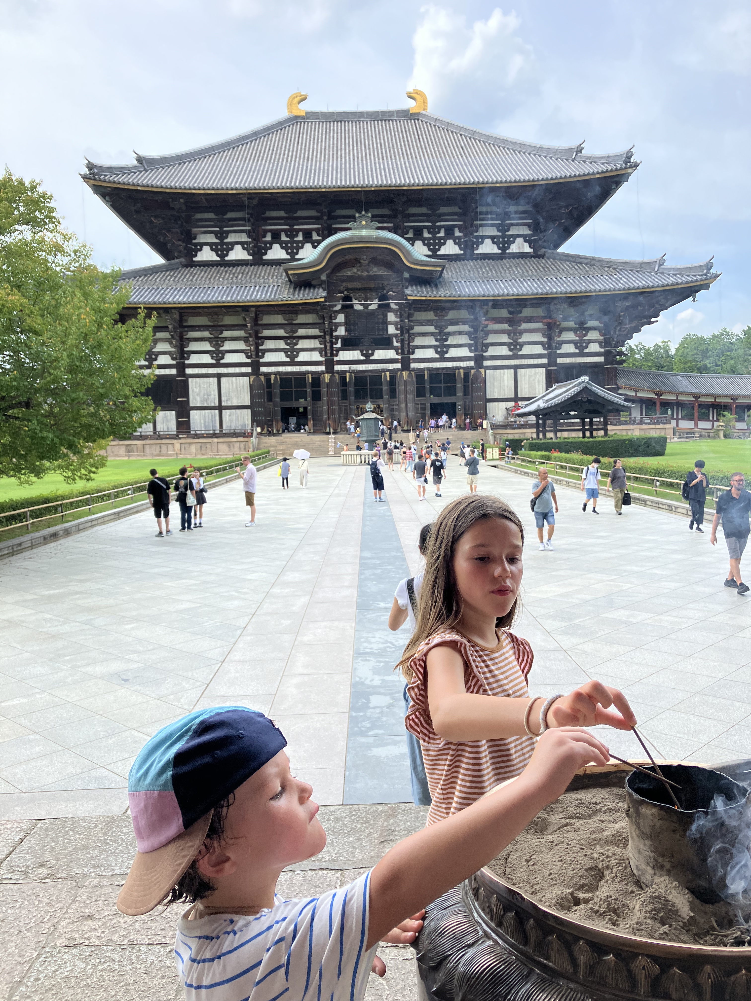 Durant notre semaine à Kyoto, on a fait un saut à Nara. Une escapade que je recommande vivement. En train, c’est une promenade de santé depuis Kyoto, et on arrive dans cette ville où les daims se baladent en liberté comme des esprits de la forêt.