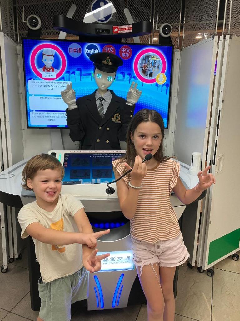 Je begrijpt het al, we zijn helemaal ondergedompeld in de stad en hebben van alles gedaan: eendjes vangen (maar dan met echte vissen), het Vrijheidsbeeld (in de Tokyo-versie, natuurlijk), het beroemde Shibuya zebrapad oversteken – een gechoreografeerde chaos –, Hello Kitty-tentoonstelling (ja, dat hebben we gedaan), shoppen, een cursus volgen om brandweerman te worden (echt waar!), een verzoening met sake (mjam, het is eigenlijk best lekker), een uitje naar de dierentuin voor 8€ voor het hele gezin (we moeten iedereen tevreden houden), een reeks kleine restaurants ontdekt op de meest onverwachte hoeken, een rooftop dinner om onze huwelijksverjaardag te vieren, een gigantische vismarkt, en vooral, een magisch immersive art museum. Een pareltje dat ik je absoluut aanraad.