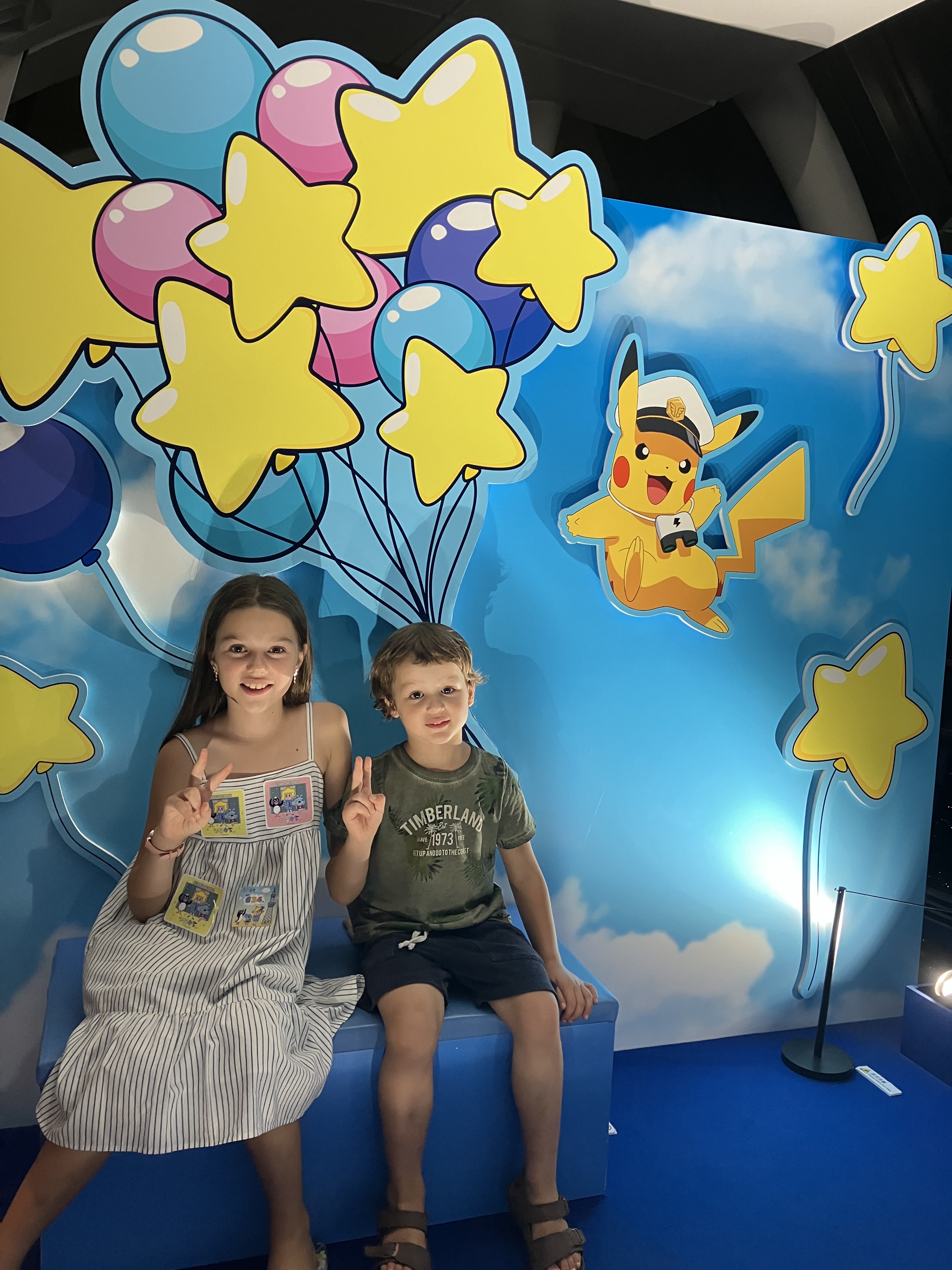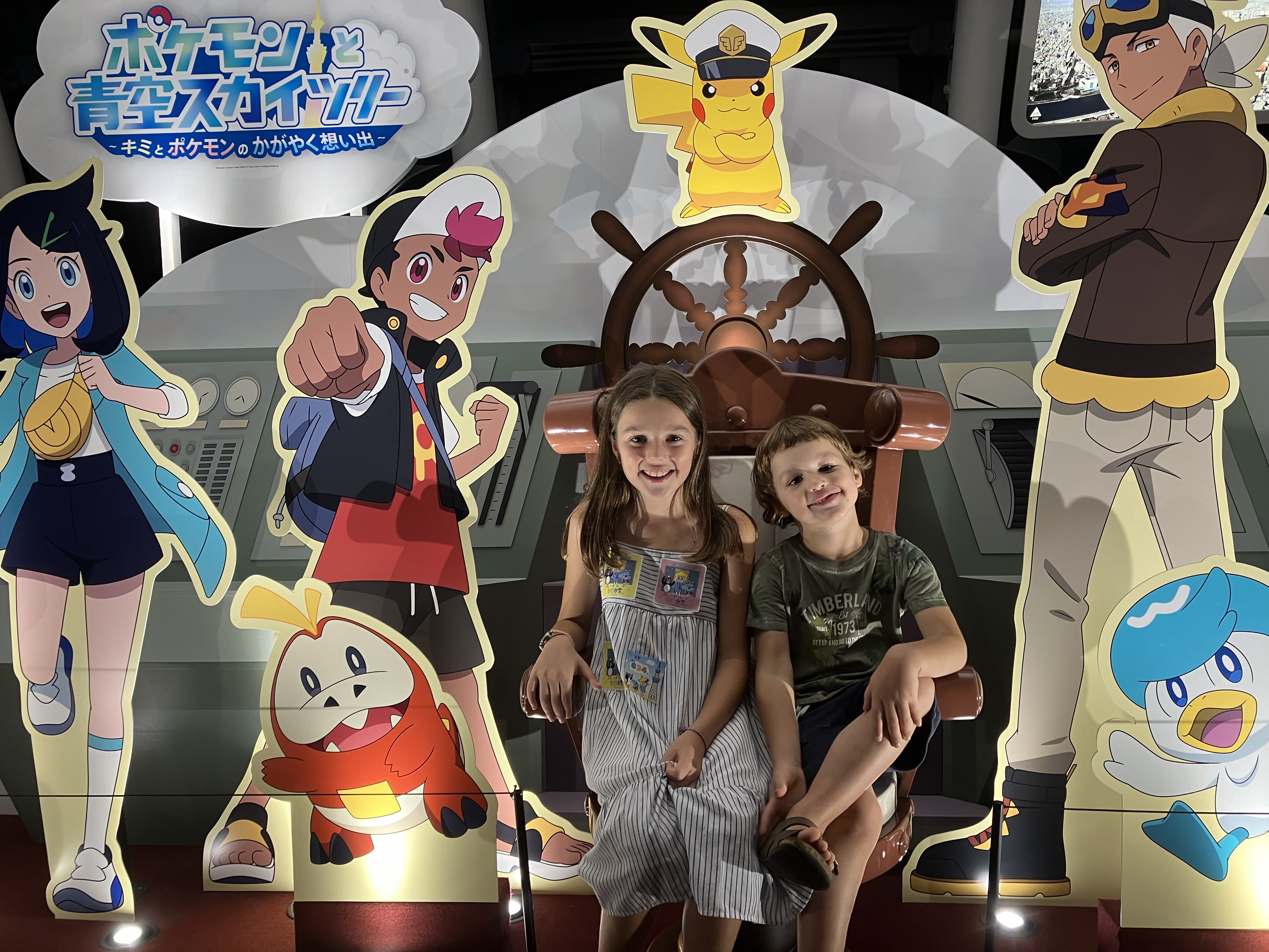 En als kers op de taart: de klim naar de top van de toren die Tokyo domineert (de Skytree). 630 meter hoog met een uitkijkplatform op 450 meter hoogte. Ik heb zelden zo’n gevoel gehad, het is duizelingwekkend. Je ziet de stad zich over tientallen kilometers uitstrekken. Je voelt je ongelooflijk klein. En bovenaan, de onvermijdelijke Pokémon-expo – een lokale touch, gewoon om ons eraan te herinneren waar we zijn. Nola & Matteo? Ze waren in de zevende hemel.