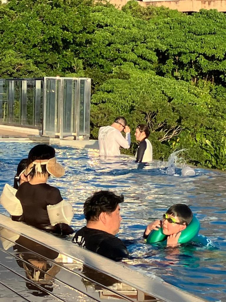 • De Japanners zijn niet echt als vissen in het water: we hebben echt veel Japanners gezien die niet goed kunnen zwemmen en spelen in 80 cm water met een grote zwemband