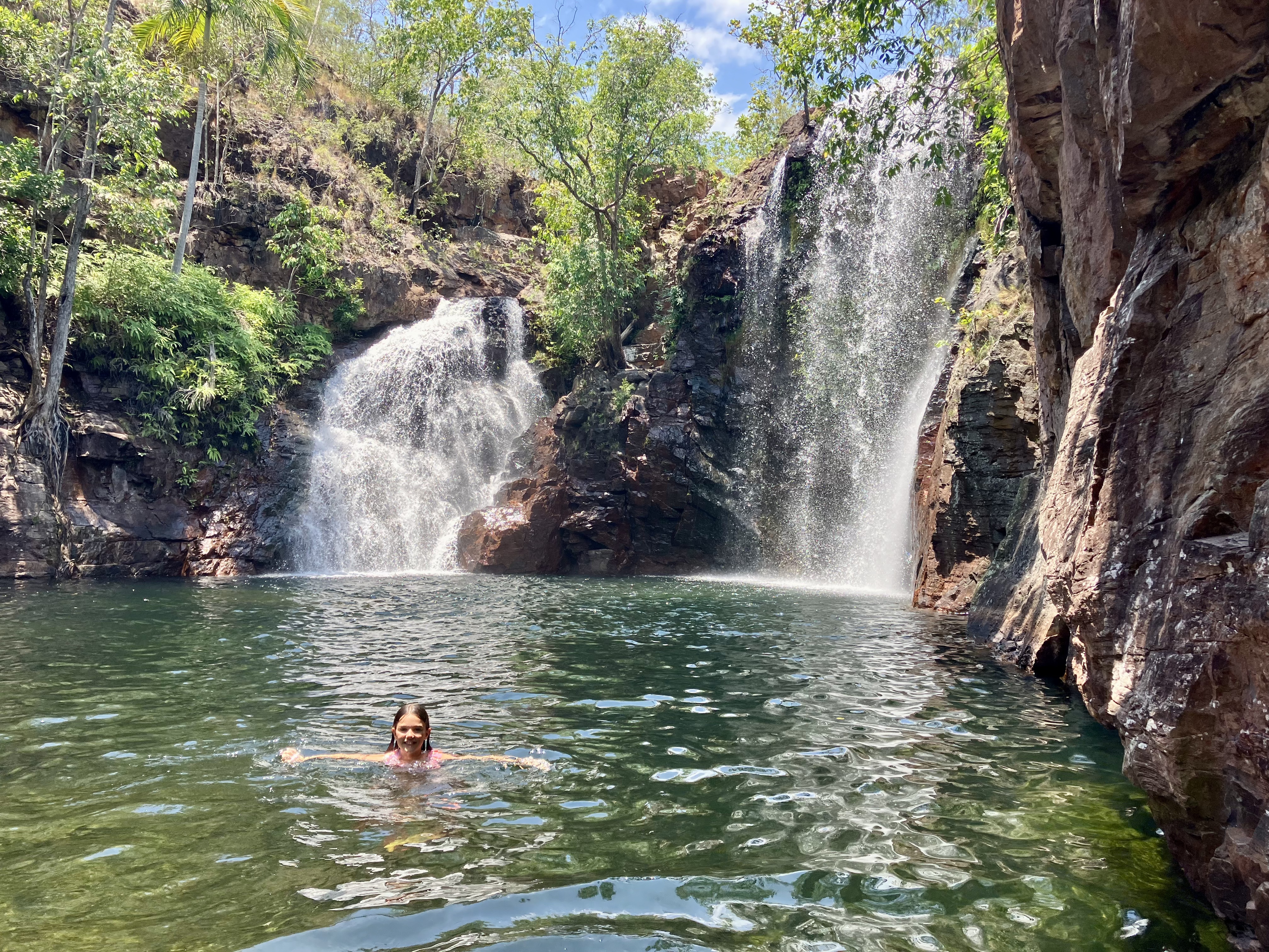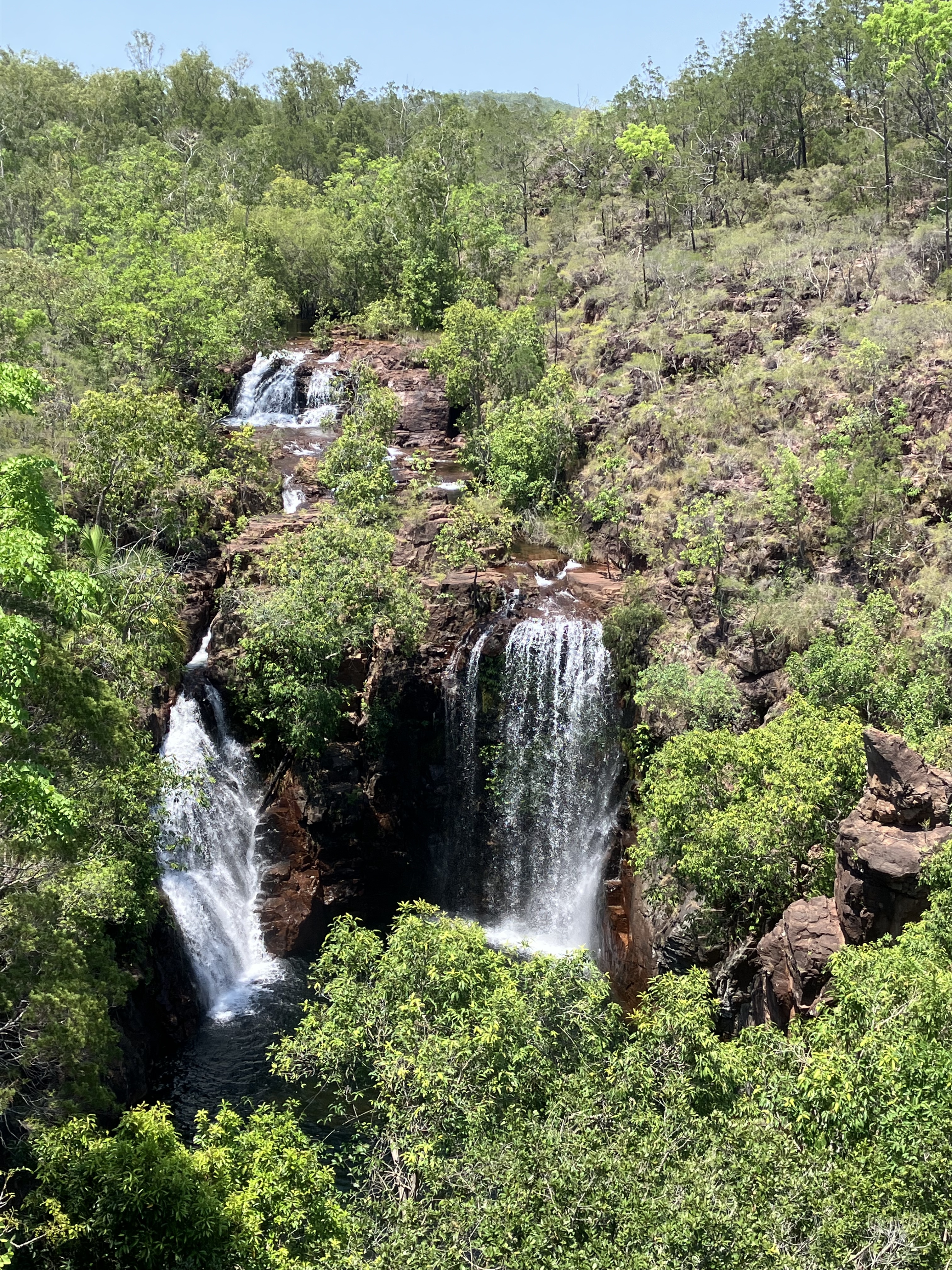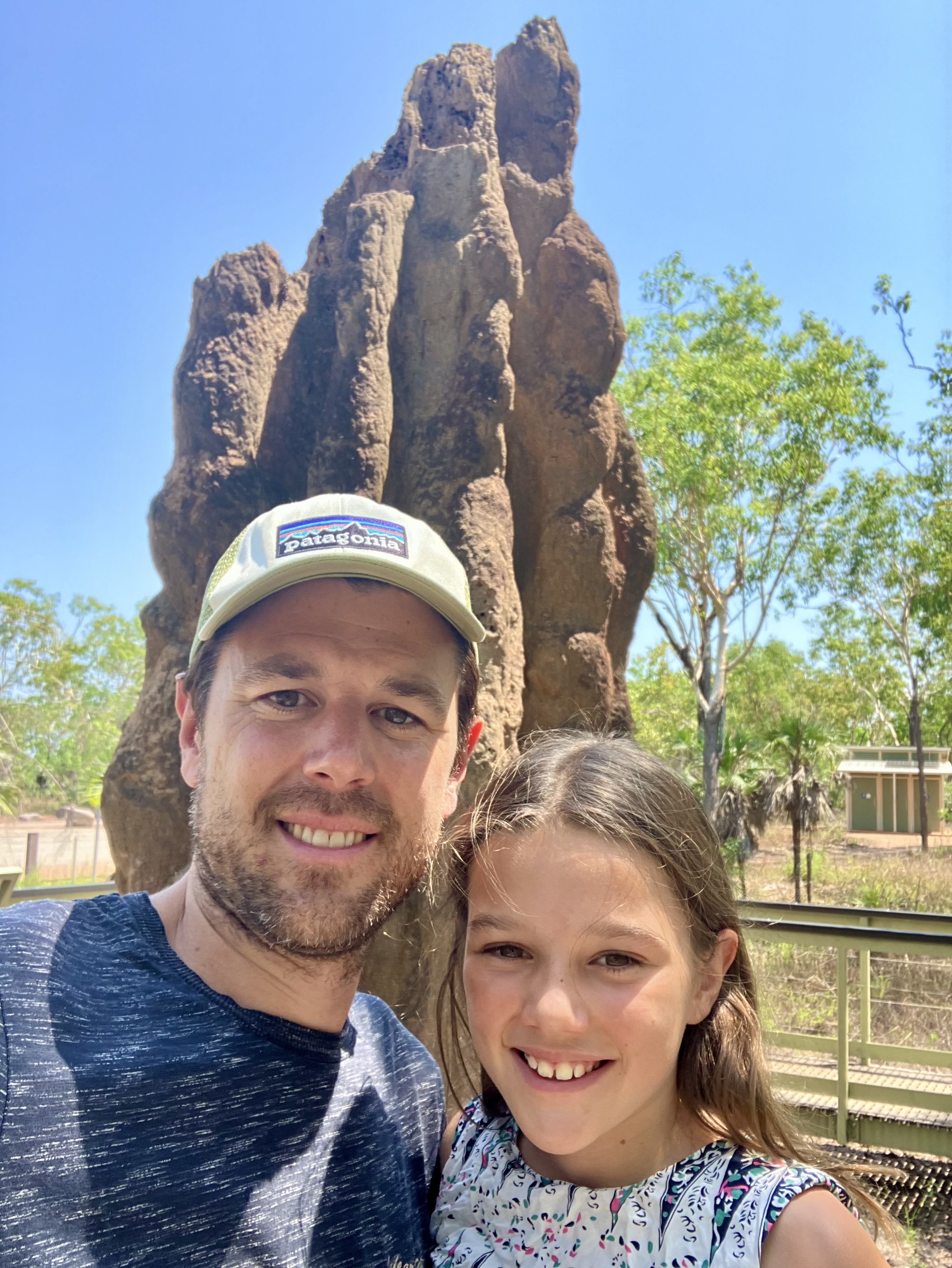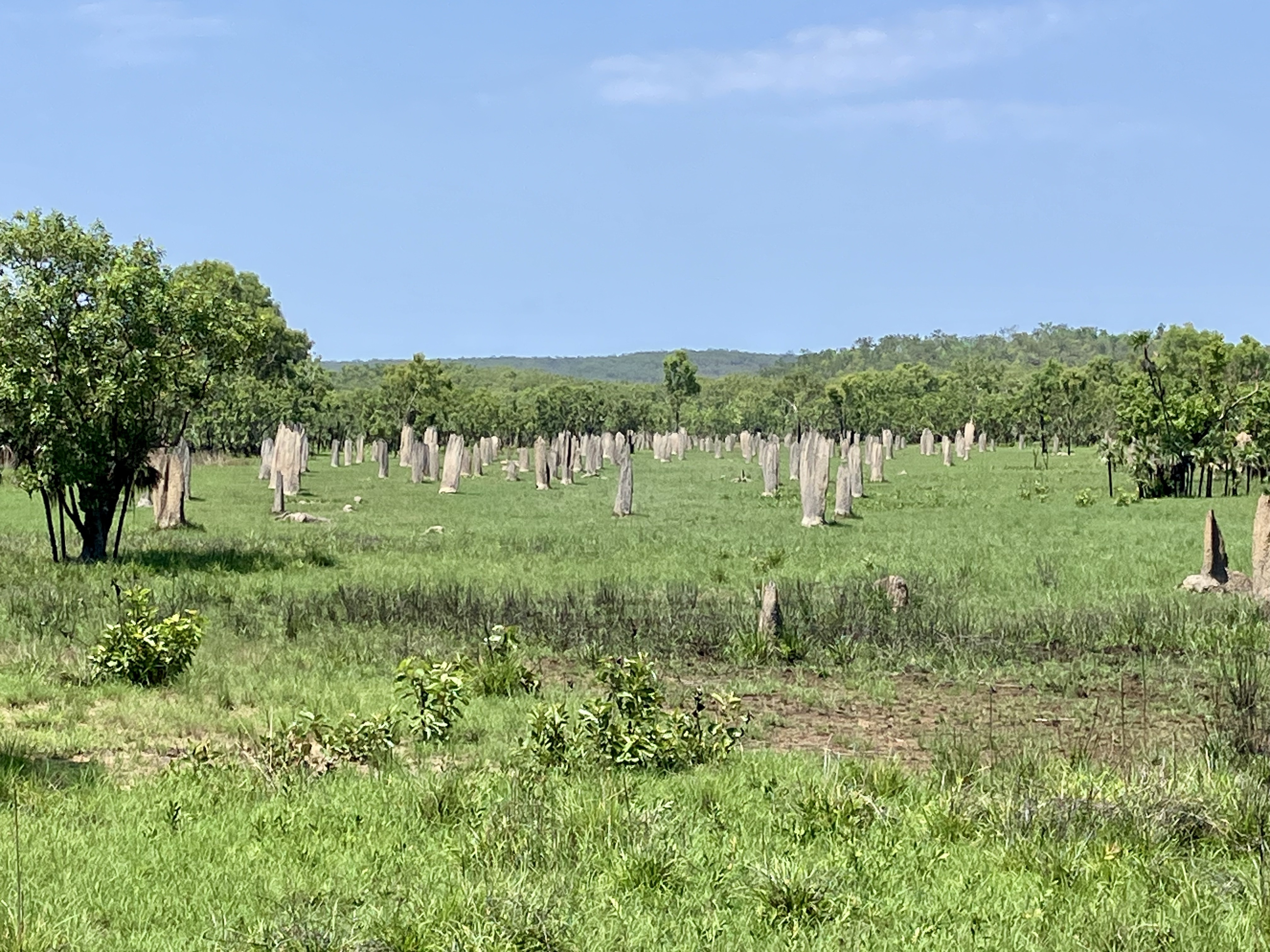 Vandaag, richting het Litchfield National Park. De dag begint met een vreemd en boeiend tafereel: de kathedralen van termieten. Deze structuren, enkele meters hoog, doen denken aan grafstenen die naar de lucht reiken. Het landschap doet denken aan een gigantisch kerkhof. Ongelooflijk om te bedenken dat een van deze nesten 2 tot 3 miljoen termieten kan herbergen (afhankelijk van de soort!).