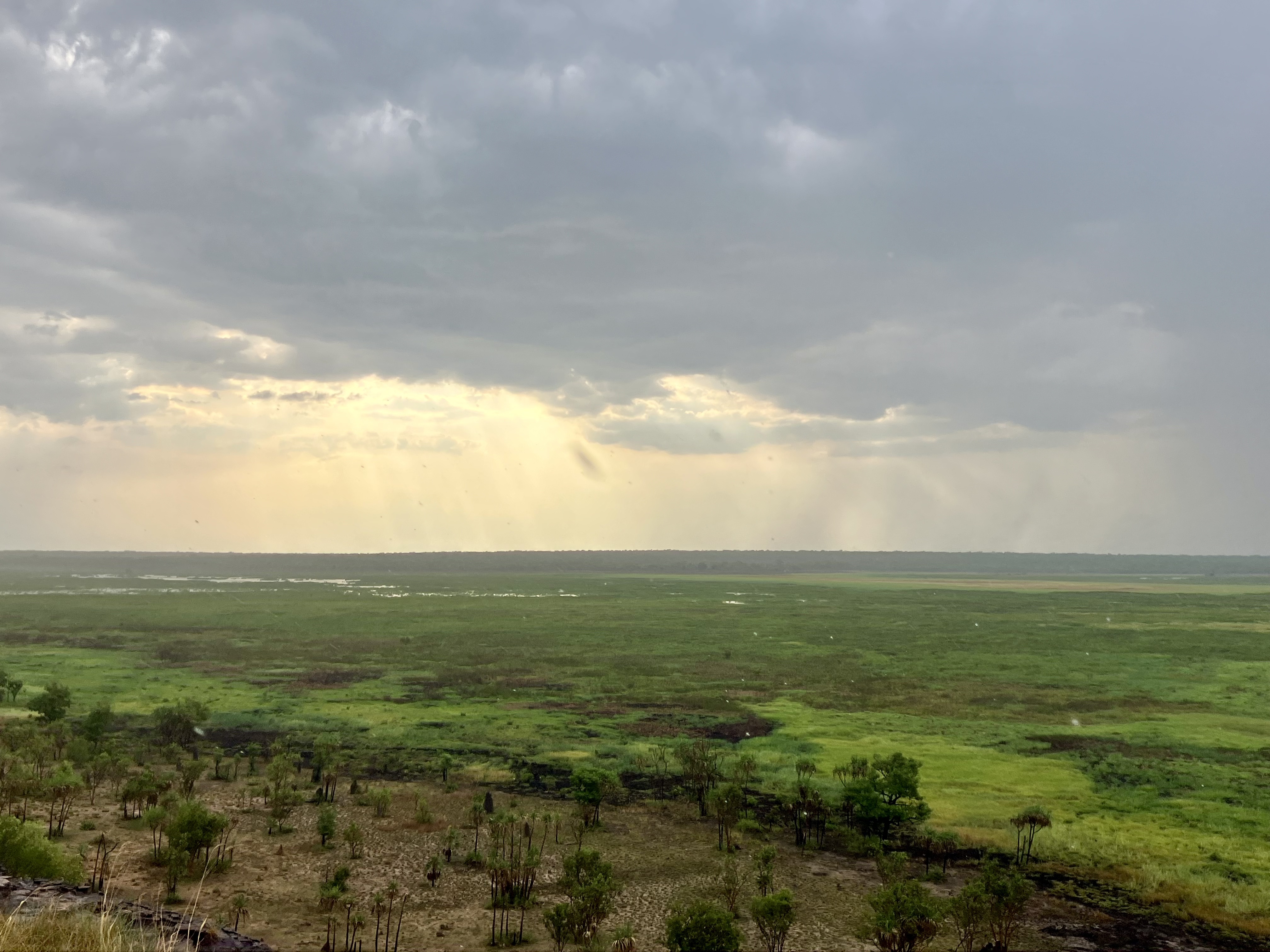 Onze vlucht heeft de landing naar Darwin ingezet. Van bovenaf lijkt alles groen, eindeloos ver, met gigantische gebieden natuur die nooit lijken te stoppen. De uitgestrektheid maakt al indruk op ons.