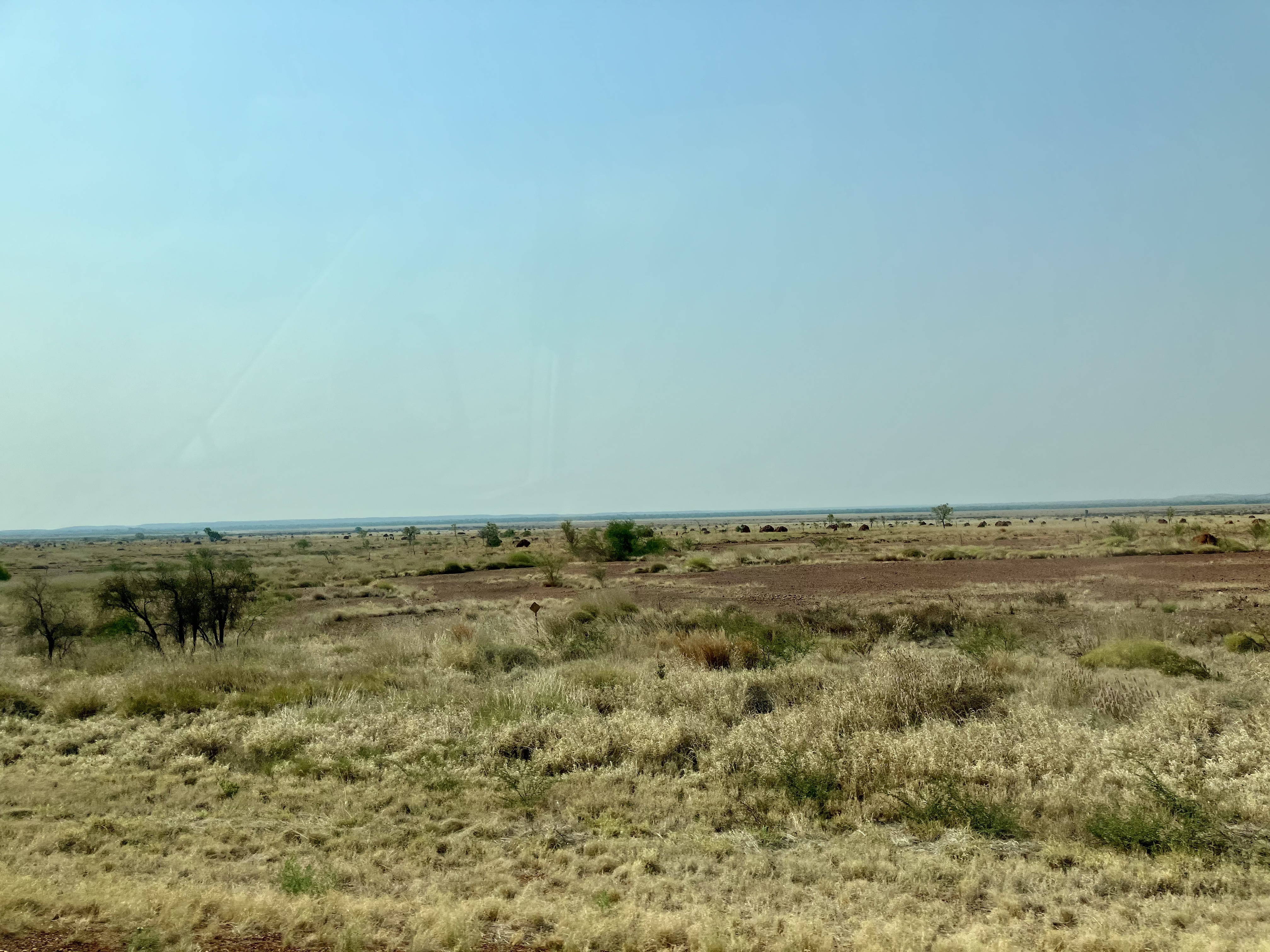 Wat is de Outback? Het is alles wat niet geurbaniseerd is in Australië, oftewel 70% van het grondgebied. Stel je voor: landschappen die zelden veranderen. Heel zelden. Een eindeloze horizon, een paar verspreide bomen, gras dat geel is gebrand door de zon, en de rechte, eindeloze weg. Weinig bochten, weinig schaduw. Alleen jij, het asfalt, en de brandende zon.