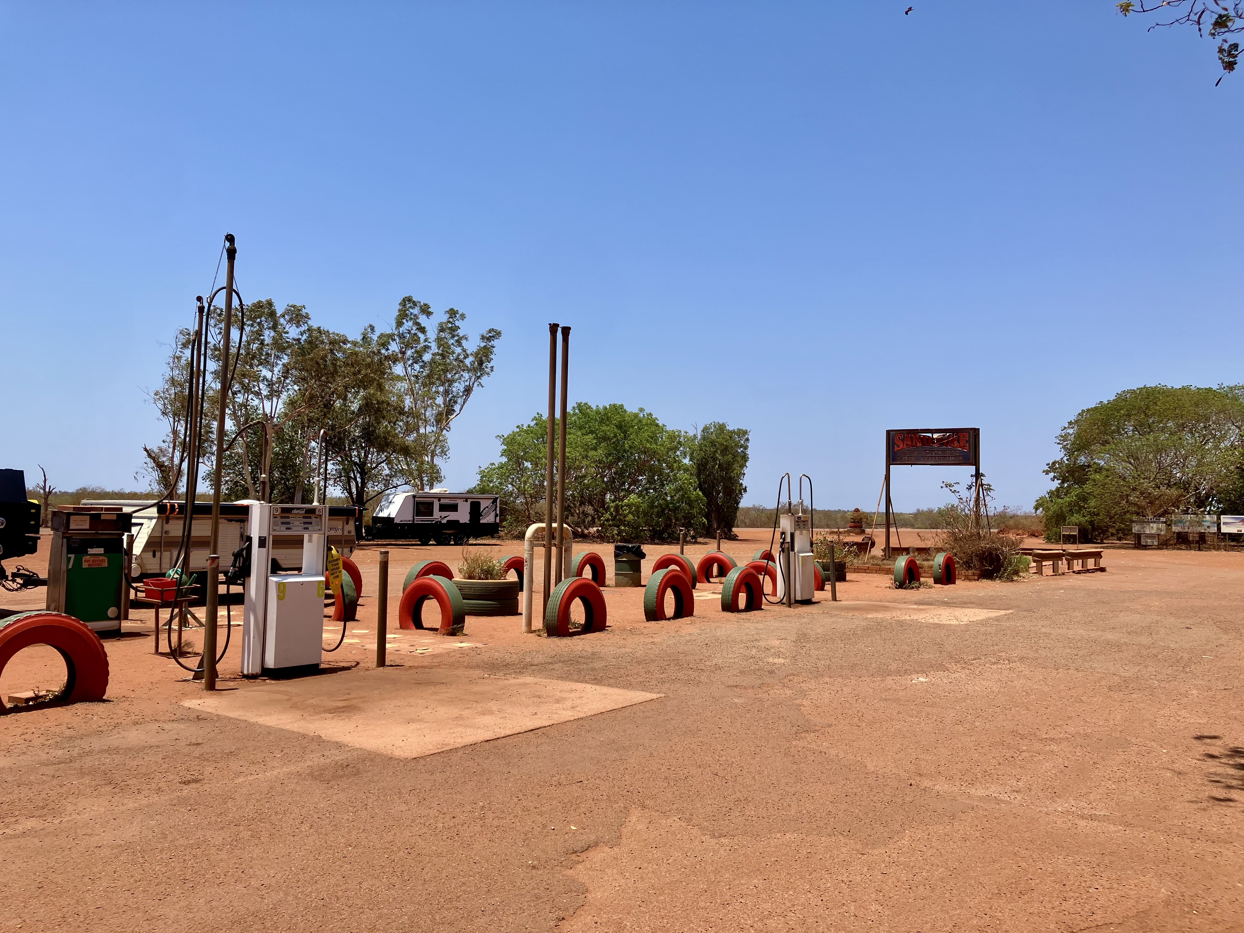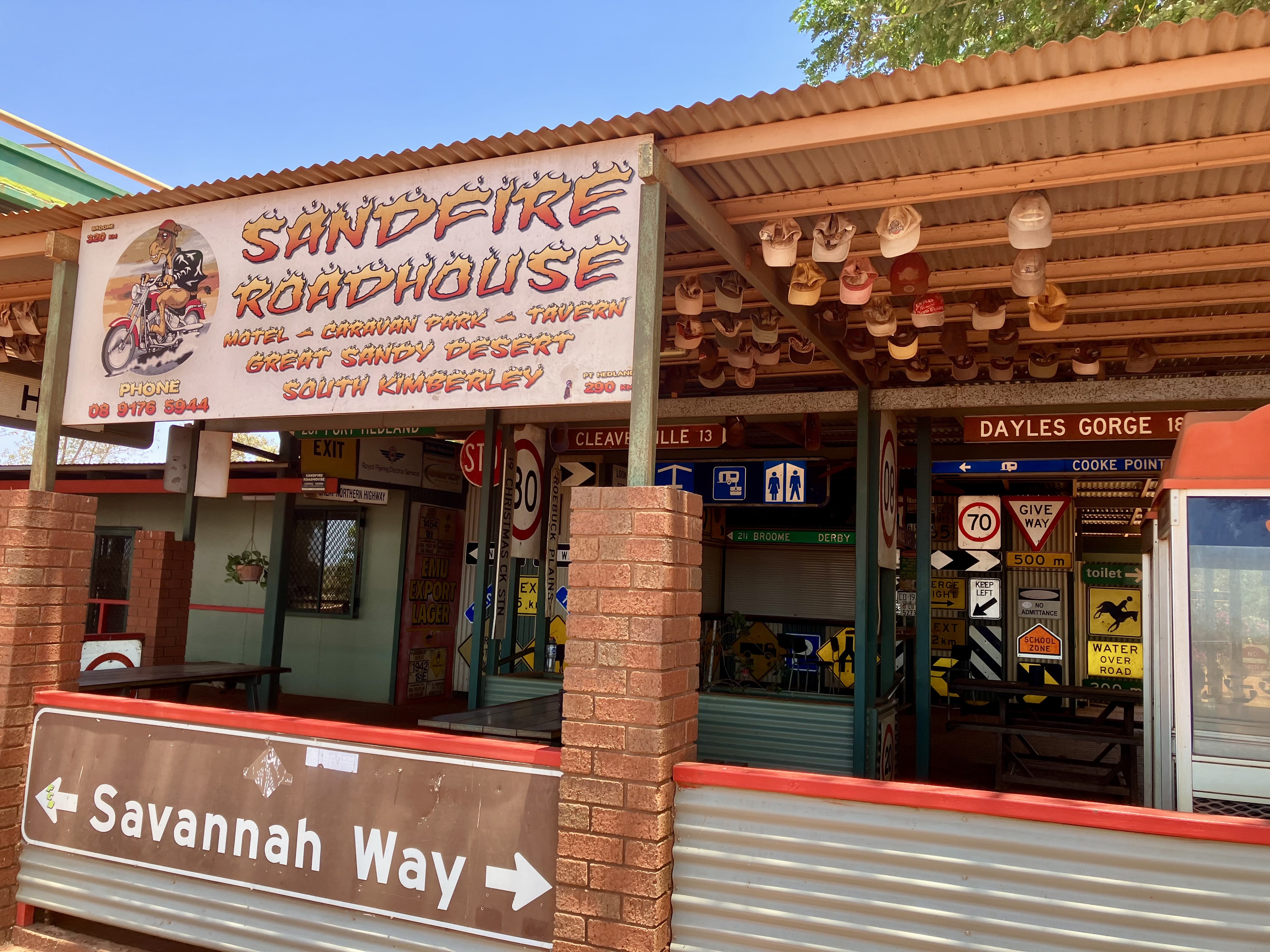 Elke 200 of 300 kilometer kom je een roadhouse tegen: een tankstation, soms een caravanpark, en als je geluk hebt, een klein winkeltje. Ik denk dat de foto’s voor zichzelf spreken.
