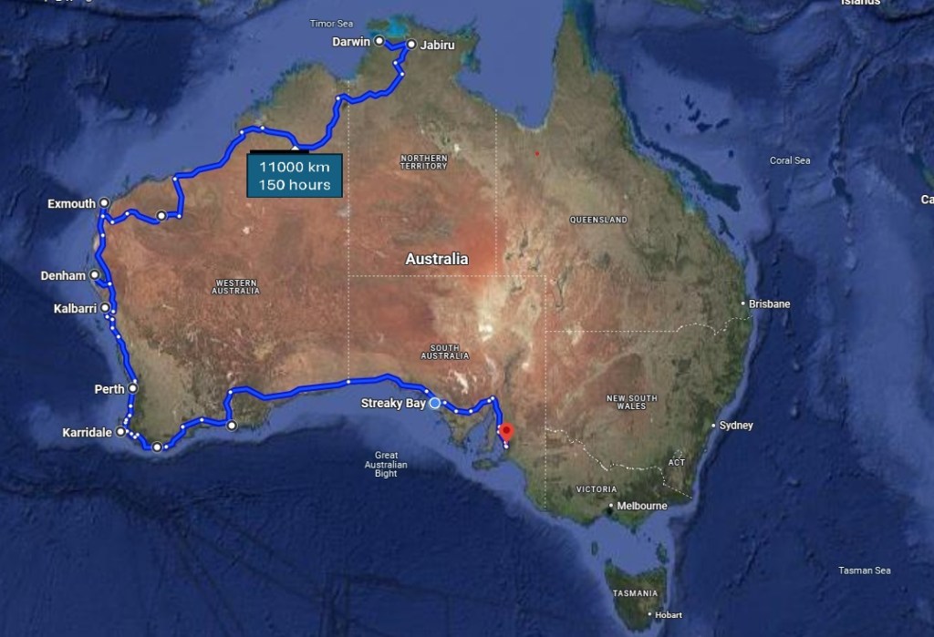 13 uur: We verlaten Northern Territory om West-Australië binnen te rijden, de grootste provincie van Australië, die zich uitstrekt over 2,5 miljoen km². Deze staat neemt een derde van het land in.