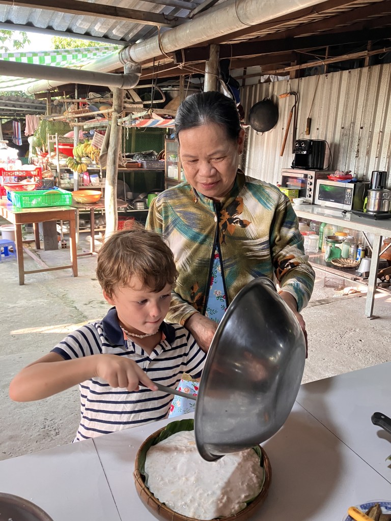 And what a daily life! Making coconut candy, forging knives, baking bricks, pressing coffee, eating pineapples at a floating market… We tried it all.