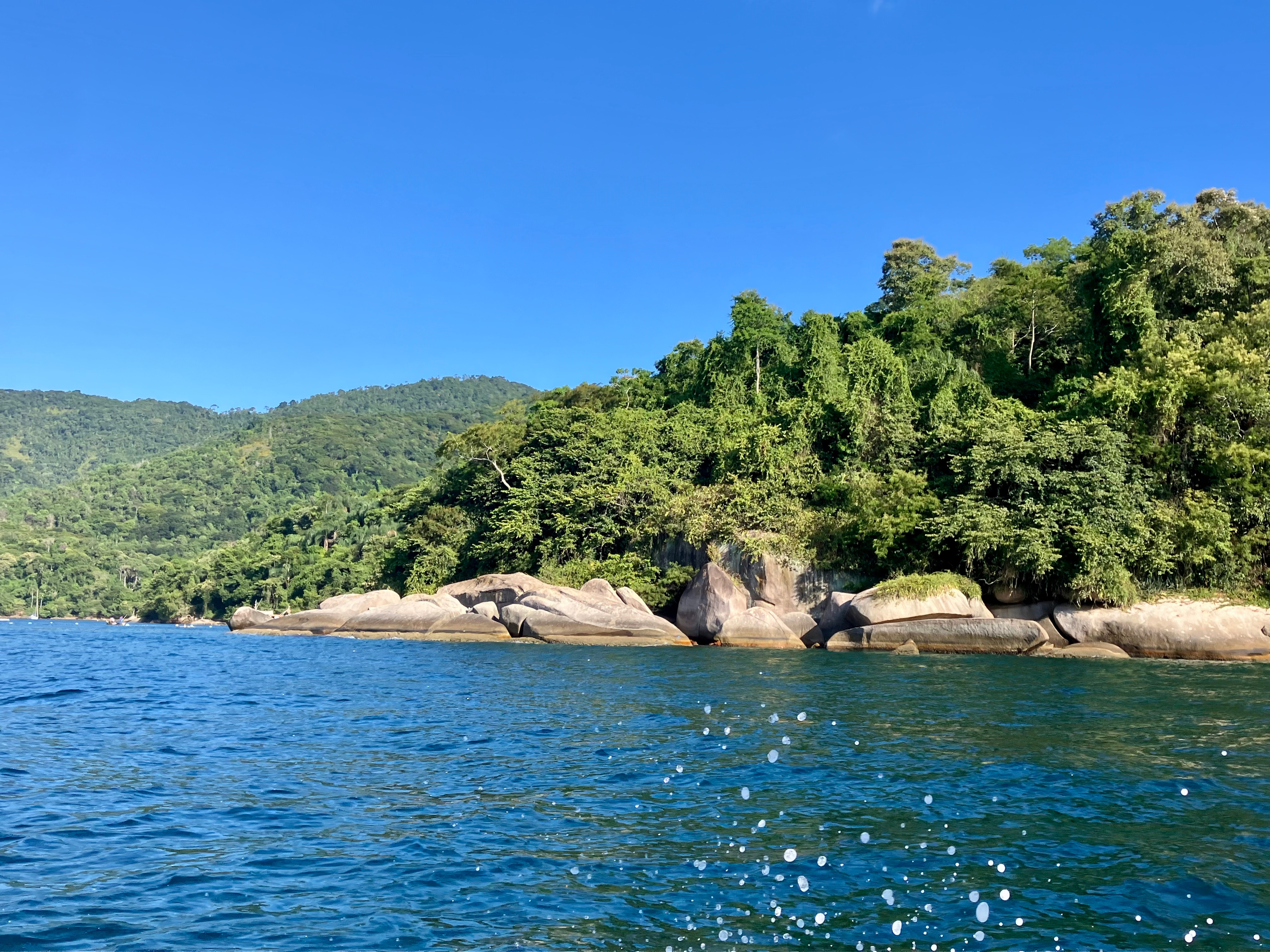 Deux jours plus tard, on reprend le large — cette fois sous un soleil de plomb. Direction Rio, à bord d’un vrai bateau, lent mais plus haut sur l’eau. On est de nouveau un peu humides… mais cette fois, ce n’est pas à cause des vagues. C’est juste la chaleur qui nous colle à la peau.