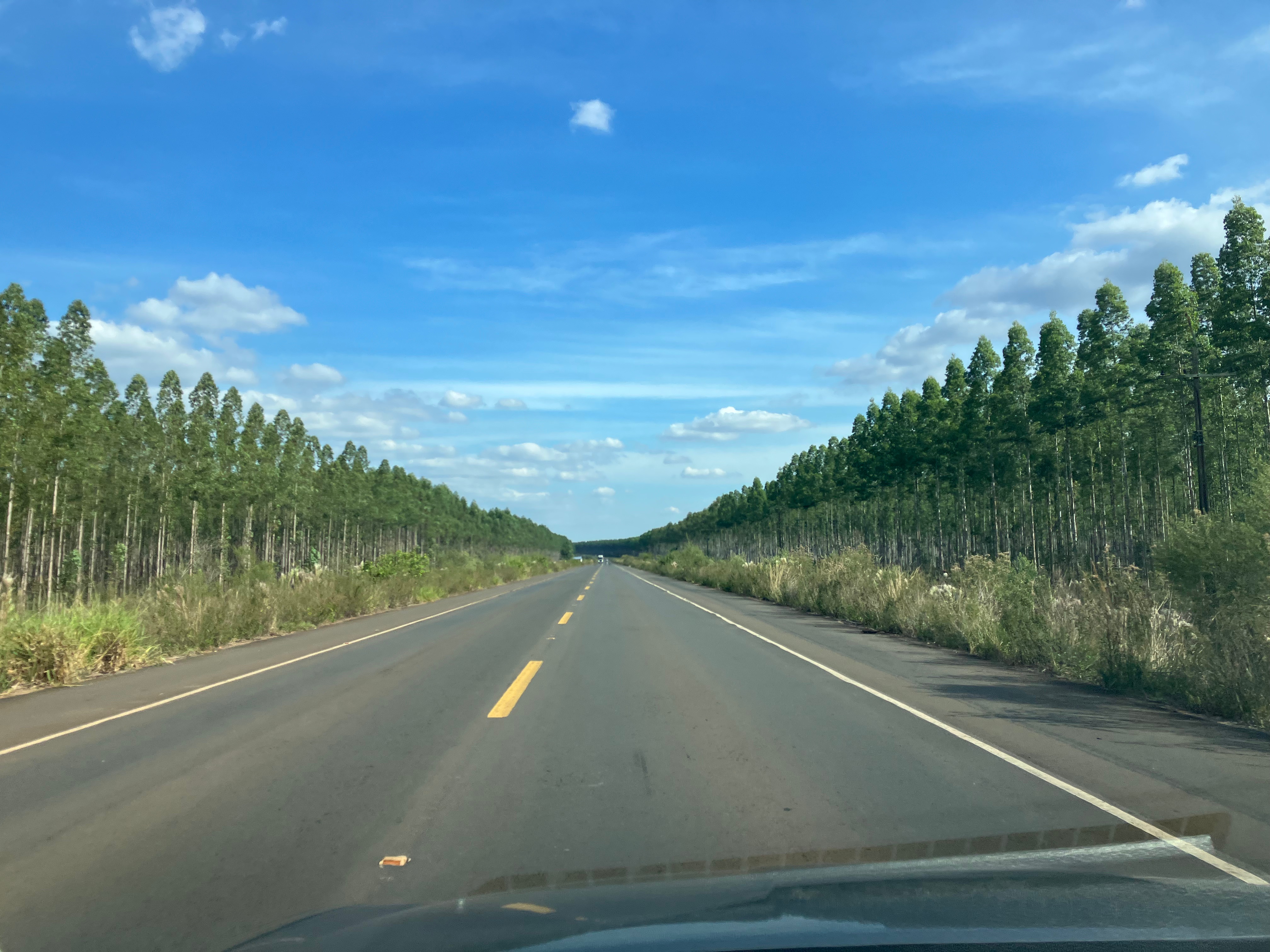 Une fois cet ensemble urbain traversé, c’est le grand vide… ou plutôt un patchwork de routes impeccable, de forêts, d’interminables champs de soja et de prairies où paissent tranquillement des vaches au regard un peu vide.